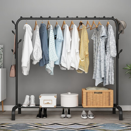 采用加宽间距,大空间多挂钩满足众多衣物的收纳需求。双层置物设计一架搞定,收纳空间更加便捷。