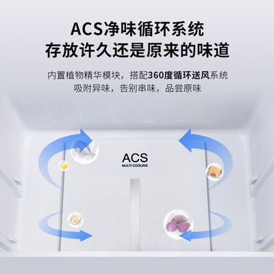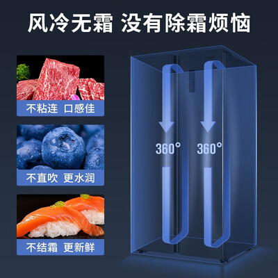 内置除臭净味系统,环抱式出风,实现无死角除臭,让食材保持新鲜。270L的冷藏室,蔬菜水果放心存放。