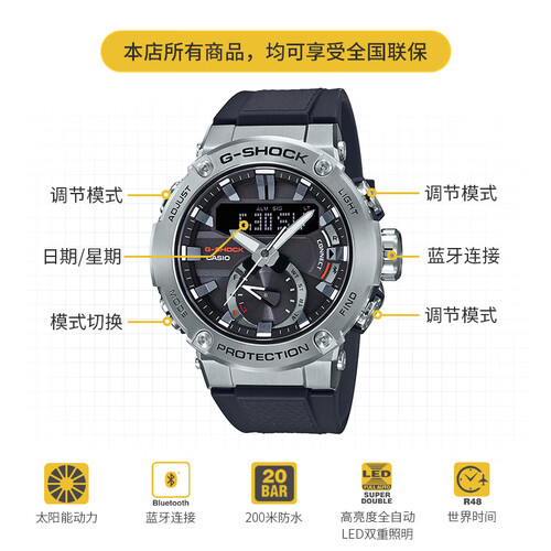坚固耐磨碳纤维材质,强韧兼具有美感。LED照明为你照亮表盘,就算黑夜也能快速读时。搭载太阳能动力,确保各项功能的稳定性。