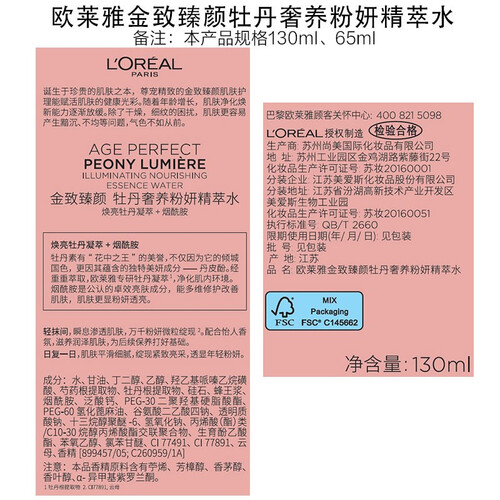 欧莱雅 金致臻颜牡丹爽肤水