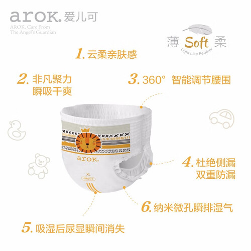 无纺布面料,云柔亲肤感,独特高分子芯体+纳米微孔瞬排湿气,八层吸水渗透结构,瞬吸干爽。360°智能调节腰围。