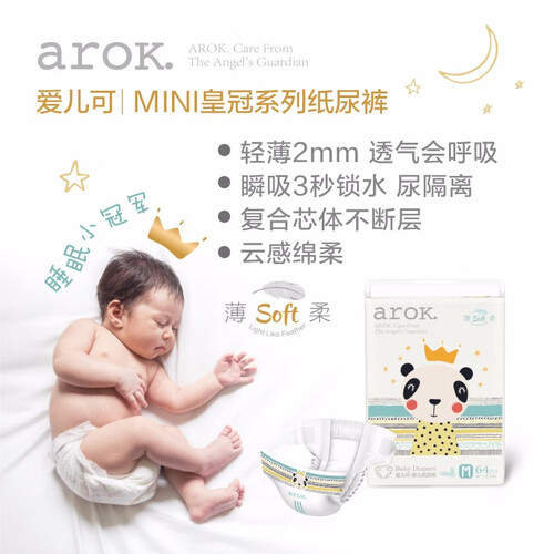 爱儿可皇冠系列中号婴儿纸尿裤,芯体轻薄无感至2mm,云柔般绵绵触感,温柔热风打孔面层,呵护娇嫩肌肤不受到伤害,妈妈安心。