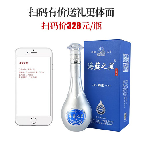 浓香型白酒,高颜值蓝色包装,更显品牌力量。入喉感觉清香可口,柔和不刺激,打开瓶盖后散发着迷人的香气。