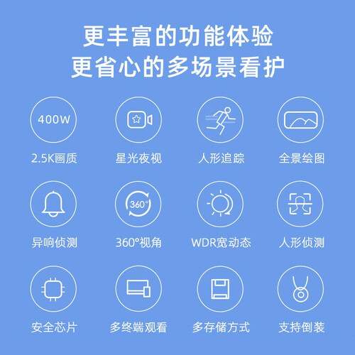 人形移动追踪,轻松捕捉可移动物体并自动跟拍,实时推送报警,安全可靠。360°全景监控,不放过任何一个角落,监控更到位。