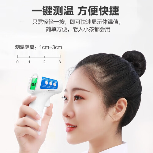 一键开机,对准宝宝额头一键测量,反应极快立马就能显示数据。并且测量结束15秒后会自动关机,做到了既省电又省心。