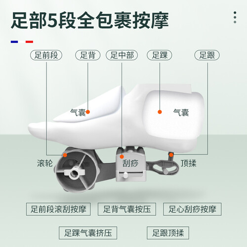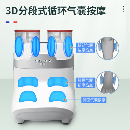 具有定时按摩功能,适合睡前使用,帮助快速入眠。针对腿部、足部分别设置了六种仿真人按摩手法,可缓解疲劳感。