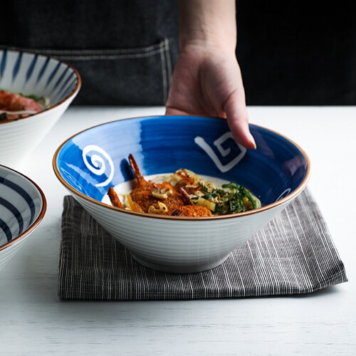 质感厚实,釉面柔滑,带给你更加经久耐用的使用体验。外形采用斗型设计,深面碗可以留住面香,使你可以吃的畅快。