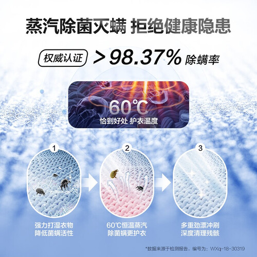 10kg大容量设计,全家衣物一次洗净无需分批,轻松解决洗护难题。搭载DEP深层净螨系统,有效根除衣物纤维深处的细菌。
