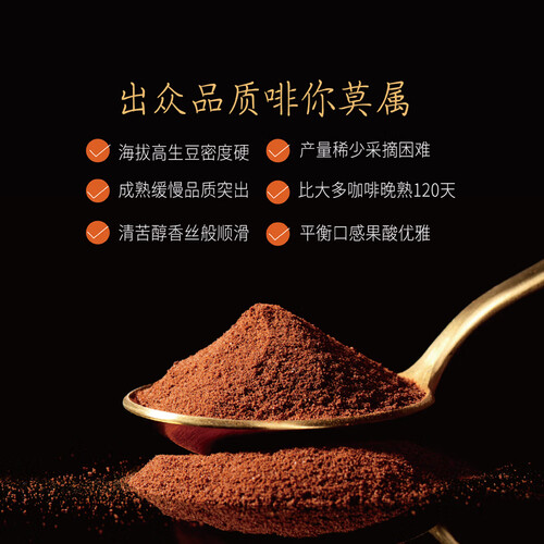具有细腻的粉质,遇水能够快速溶解,而且不会带来难堪的残渣。采用无糖的配方制作,保持咖啡的原汁原味,品尝到自然的芬芳。