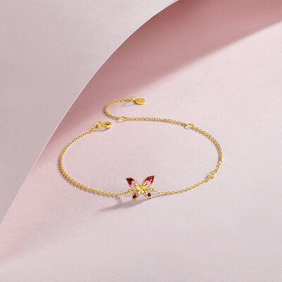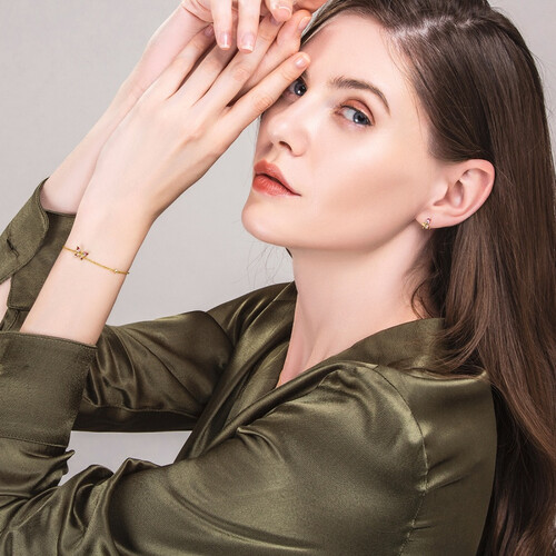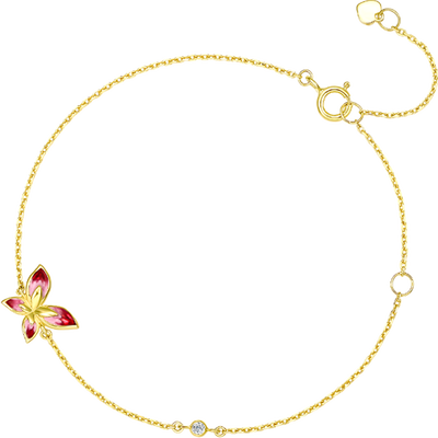 以桃花与蝴蝶元素设计的手链装饰,糅合了彩色渐变珐琅镀层,使蝴蝶造型更加栩栩如生,佩戴在腕间灵动浪漫。