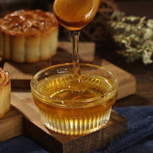 月饼专用的香甜不腻糖浆,颜色金黄透亮有光泽,散发着淡淡的清香,而且甜度适中,做出来的月饼金黄闪耀,做面包和饼干都可以。