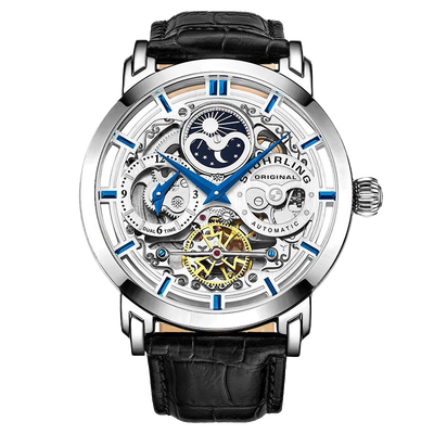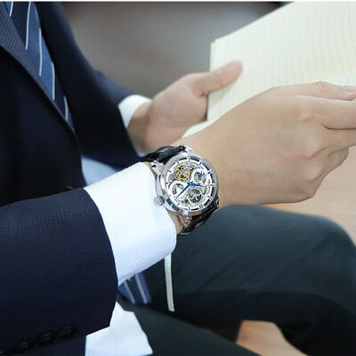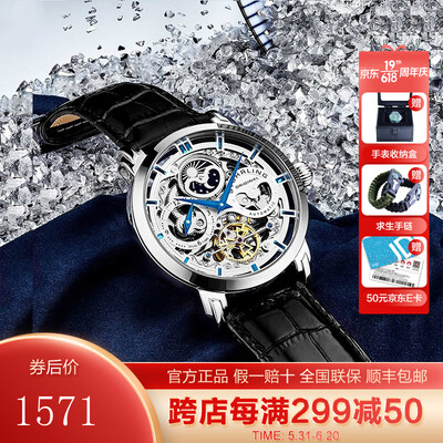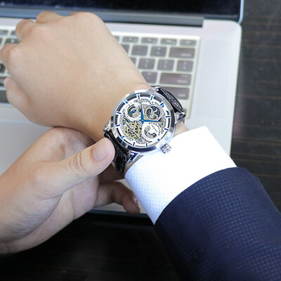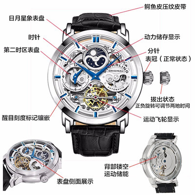 复杂多层次的机械机芯,给视觉多层次的冲击力,造型硬朗,从表盘到表带体现真正的质感,诠释帅气的硬汉形象。