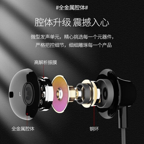 这款耳机主线采用无氧铜芯,能有效减少噪音,高度还原无损音质,全面升级的全金属腔体,让你拥有5D环绕音效。