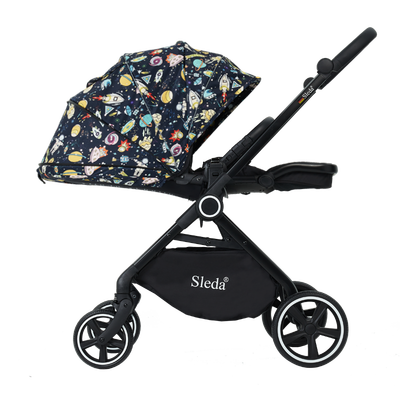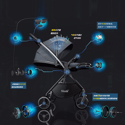 可躺可坐,贴心设计,妈妈放心更实用,前轮可定向或万向、带减震功能、后轮带刹车、三角式安全带、储物功能、靠背多个支撑点更牢