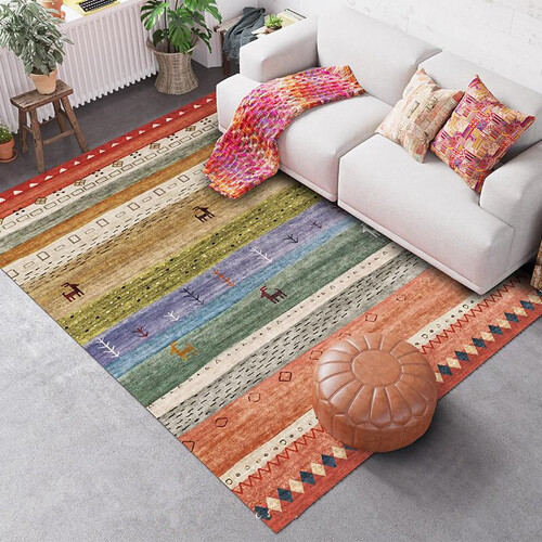 底部采用热塑防滑底,能够有效防滑,放置稳固,还能保护地板。毯面是印第安文化图案设计,为你展现特色印第安文明。