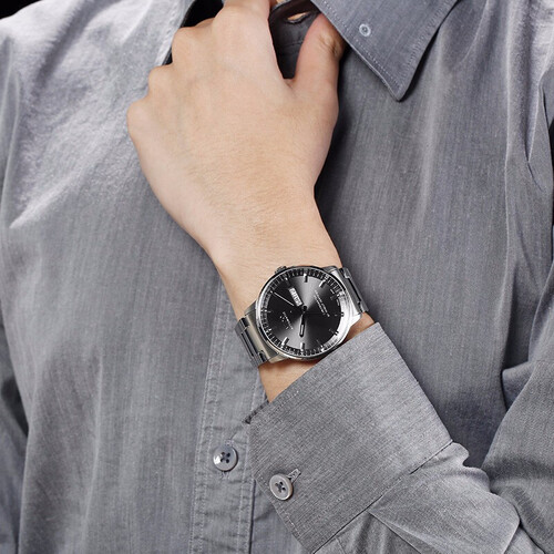 深邃高雅的烟灰色盘面,搭载日星双显视窗,读时轻松从容,内置自动机械机芯,走时精准持久续航,体验从容不迫。
