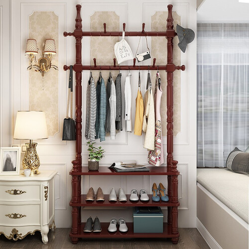 盛连多功能落地实木衣帽架