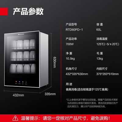 小身材却拥有60升的大容量,能够轻松收纳全家人的餐具,无论是放在厨房还是餐桌都可以,也能放在办公室里消毒茶具使用。