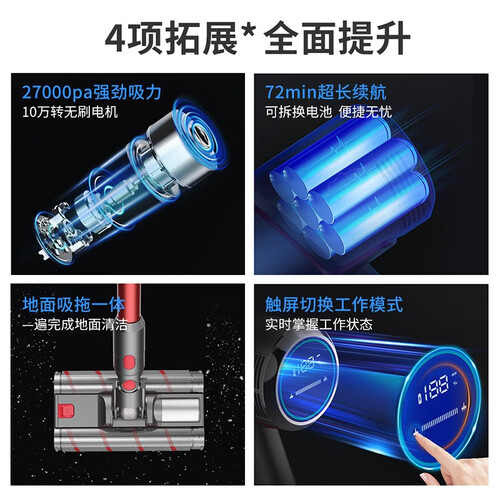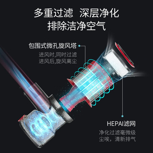 采用多重过滤系统,高效过滤,避免空气二次污染。1.3kg轻量机身,保证吸力不变的情况下减轻重量,家庭主妇也能轻松掌控。