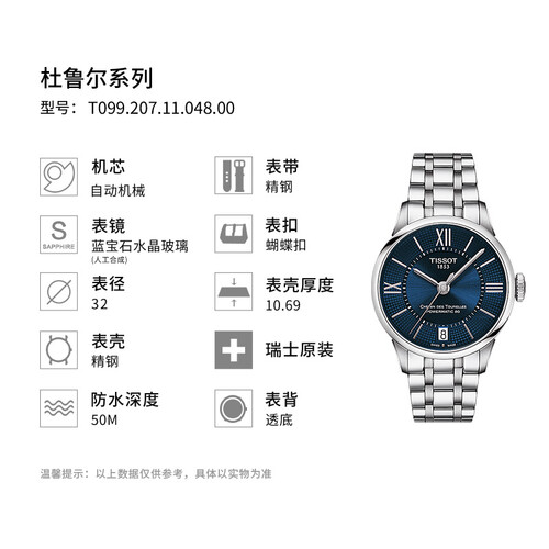 采用不锈钢板材制作表壳,配以特殊工艺细致处理,防刮耐磨不易生锈。时髦新颖的透底设计,近距离感受机械之美,彰显品位。