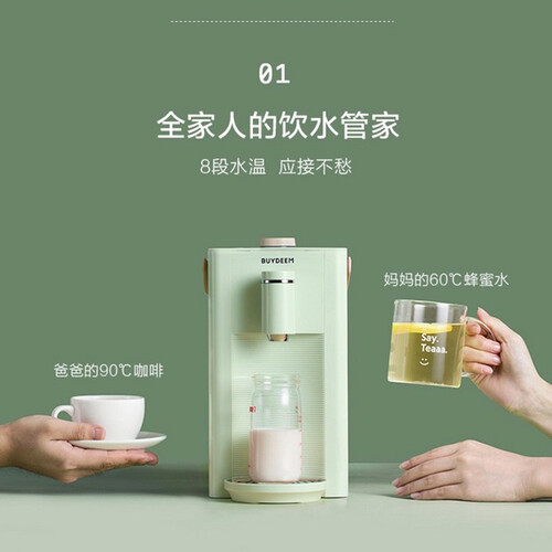 食品级材质水箱以及内部加热系统,不会析出无异味,保障家人饮水安全。一旋一按即可调节水温,操作不繁琐。