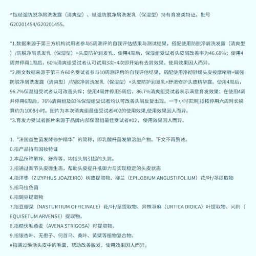 添加洋枣树、柳兰等成分,可以温和的去除头屑,不伤害头皮。豌豆提取物能让毛囊散发活力,防止头发脱落,守护发质。