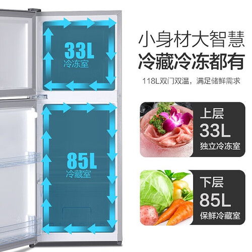 紧凑小巧的机身,整体占地空间更少,结合双门双温设计,根据需求分开储存食材,轻松满足全家人的储存需求。