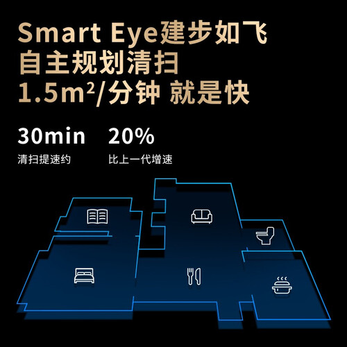 采用新一代高精建图,精度可提升4倍,快速还原家居布局。7.6厘米超薄机身设计,可进入更多家具底部,清扫更多区域。