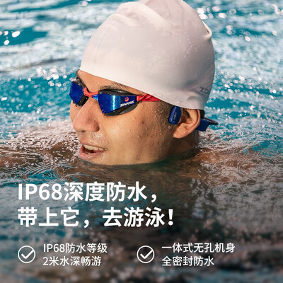 拥有IP68级防水功能,水陆模式可随意切换,让好音乐陪你尽情畅游。采用新一代骨传导技术,音效强劲,给你环绕立体声体验。