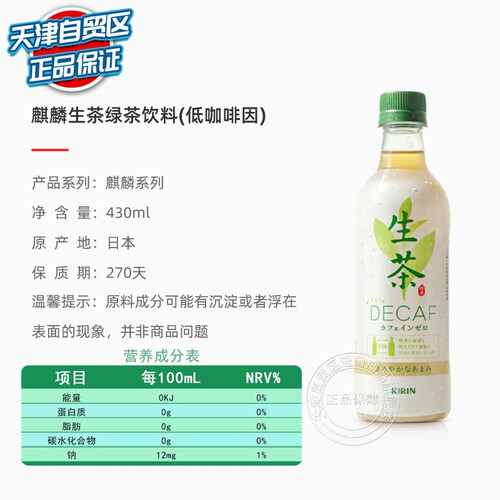 麒麟生茶完整萃取生茶叶抽出物,将绿茶的生命力全面引出,完好保留了茶叶的口感、香气、茶色,喝前摇一摇,风味更佳。