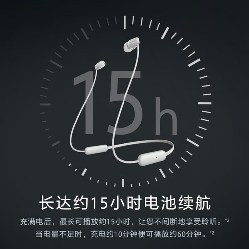 拥有约15小时的续航能力,配合快速充电设计,让音乐聆听不停歇。配备线控麦克风,轻松操控音乐,让聆听更简单快捷。