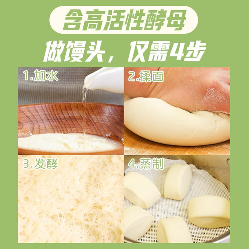 粉质细腻的面粉中加入酵母,所以发酵更为快速,无论是做馒头还是做花卷都能快人一步。制作的面食,色泽自然诱人,有着浓郁麦香。