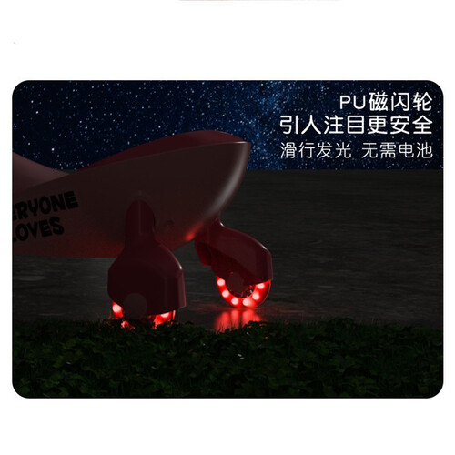 经过多次打磨处理的流线型车身,无倒角,触感细腻,避免划伤宝宝肌肤。一滑就亮的PU磁闪轮,滑行更吸引人注意。