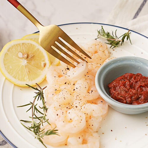 大虾捕捞上岸后,会及时清洗筛选,只保留完整好虾。整虾加工去壳,手工去虾线,使口感自然鲜嫩。