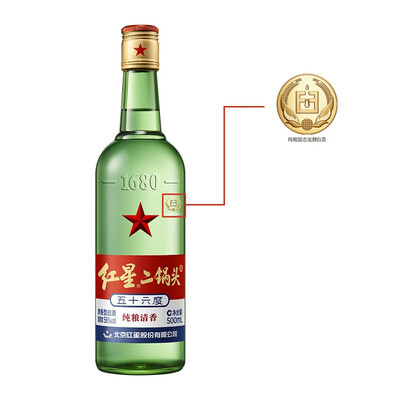 高粱大麦等原料,酒质清澈透明,气味香郁,清香纯正,回味悠长。搭配清晰红星标志,中国特色,富有韵味。