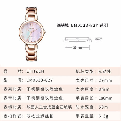西铁城 光动能贝母盘手表
