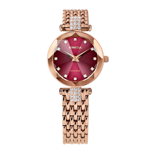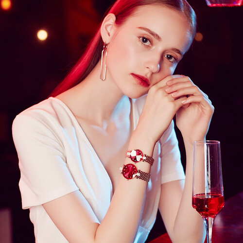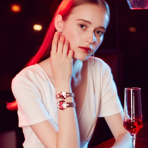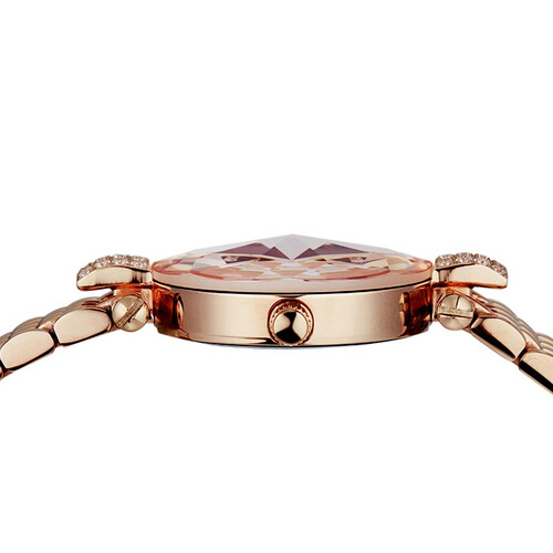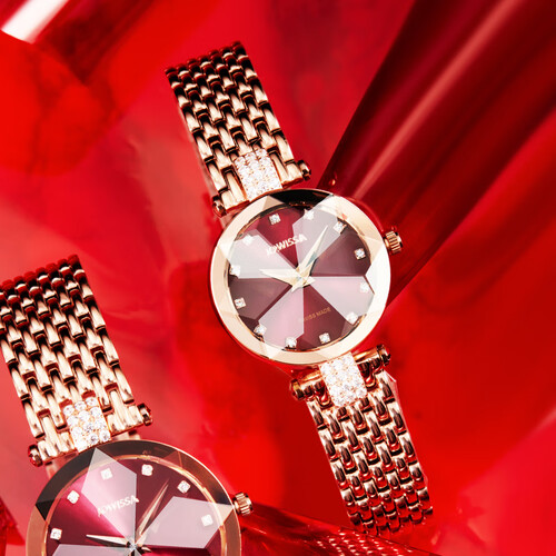 菱形切割设计,与镶钻点缀相辅相成,营造出精致轻奢的魅力视觉,玫瑰金精钢表带,温润柔和显肤白,而且亲肤防过敏。