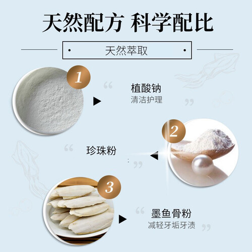 添加墨鱼骨粉,持有生物活性,富含洁净因子,温和摩擦去除牙软垢、牙渍;清新舒畅的薄荷香,沁人心脾;草本研磨而成,粉质细腻。