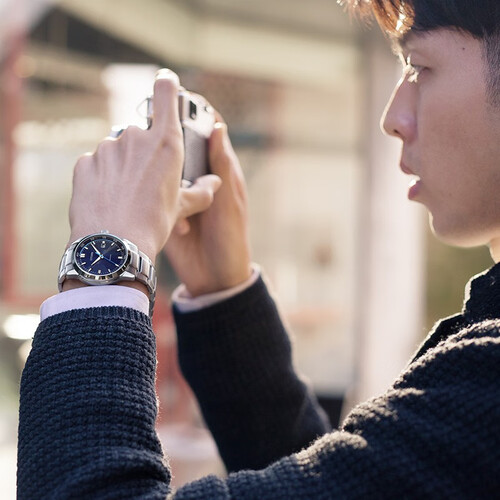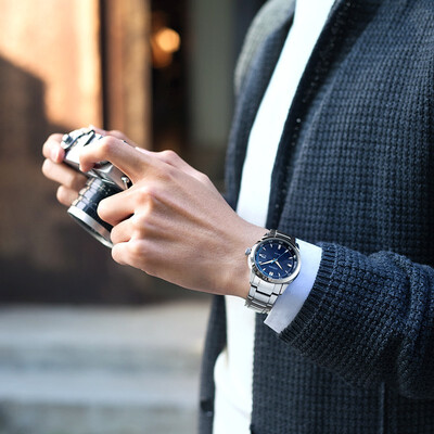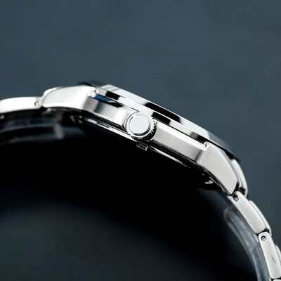 矿物质水晶玻璃张力大,具有出色的通透度,读时更加清晰便捷。双按式三折扣表带自然贴合手腕,佩戴舒适,散发出金属的质感。