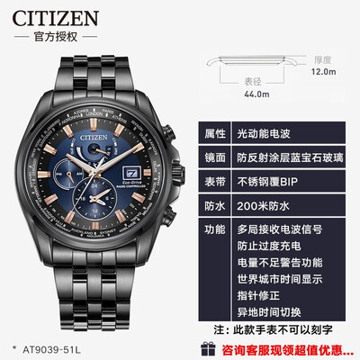 质地通透的蓝宝石镜面,耐磨耐刮,不容易变形。光动能电波机芯,提升整体的实用品质,性能持久。