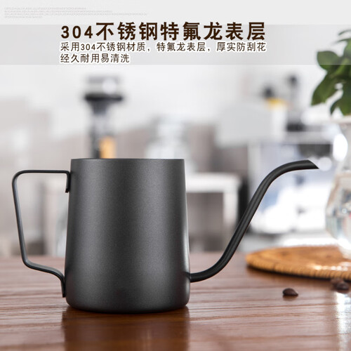 欧式细长嘴设计,壶身基于采用304不锈钢打造,加上为特氟龙表层,厚实耐磨,不易刮花,且用后清洗方便。