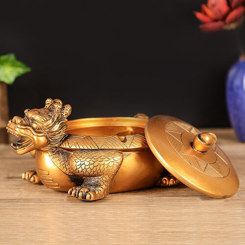 复工龙龟造型的烟灰缸,摆在台面上更显得典雅美观;而环保的树脂材质,轻盈有韧性,且抗摔耐磨。