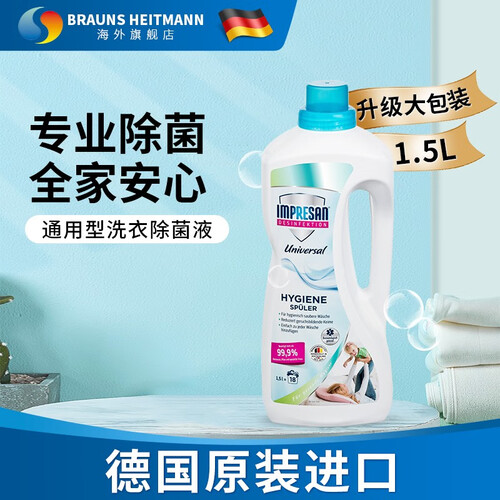 通用型除菌消毒液,出色灭活病毒,全家衣物都适用;第三代季铵盐安全配方,气味自然清淡,无染色风险。