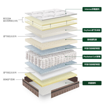 采用比利时INTENSE深睡科技,智能面布将细微复碳纤维细裹在纱线中,减少静电干扰,透气乳棉层配合进口高纯乳胶,提升睡眠品质。