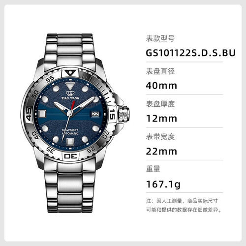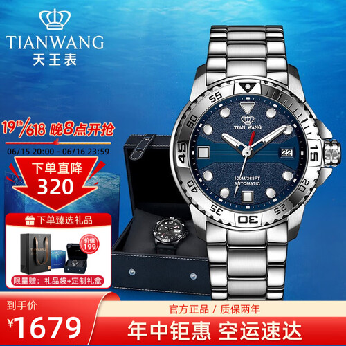 天王表 蓝色运动机械男表