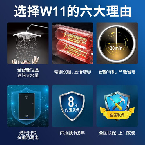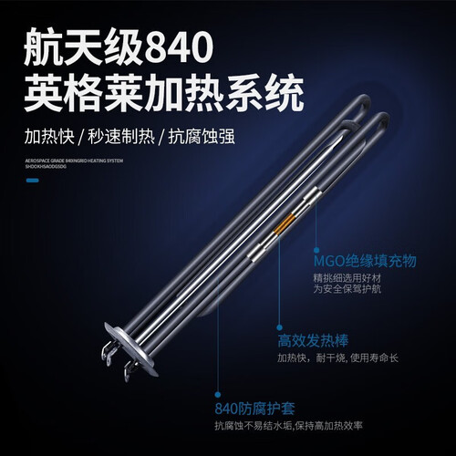 具有精准控温的技术,不受环境气温影响,保持恒定温度不动摇。选用840英格莱加热管,大大缩短加热时间,告别洗澡前漫长等待。