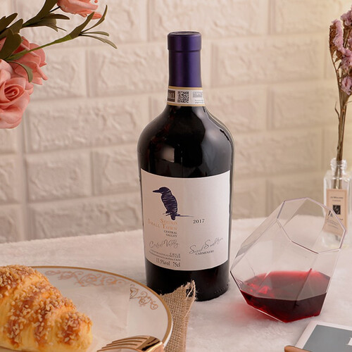 产自智利中央山谷,配合人工采摘的佳美娜葡萄品种,口感浓郁香甜有层次。质地细腻,入口柔顺。酒帽微氧小孔设计,更加新鲜。
