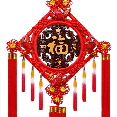 福鱼设计,缝制细致寓意吉祥;团锦花手工编织围绕,造型栩栩如生,寓意锦上添花;穗子紧密顺滑,做工精致上档次。