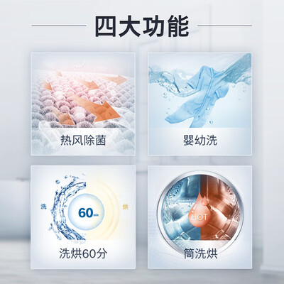 内置高性能电机,能带来强劲的动力,清洁衣物更彻底。拥有热风除菌功能,轻松告别菌螨的困扰,宝宝的衣物也放心洗。