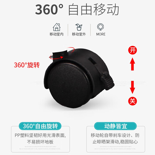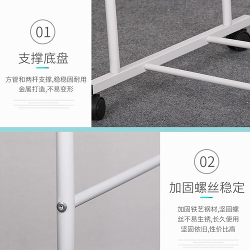 加粗加厚钢管,不易生锈,承重能力强。360度可旋转万向轮,PP塑料材质,坚韧不刮伤地板,自由调节。